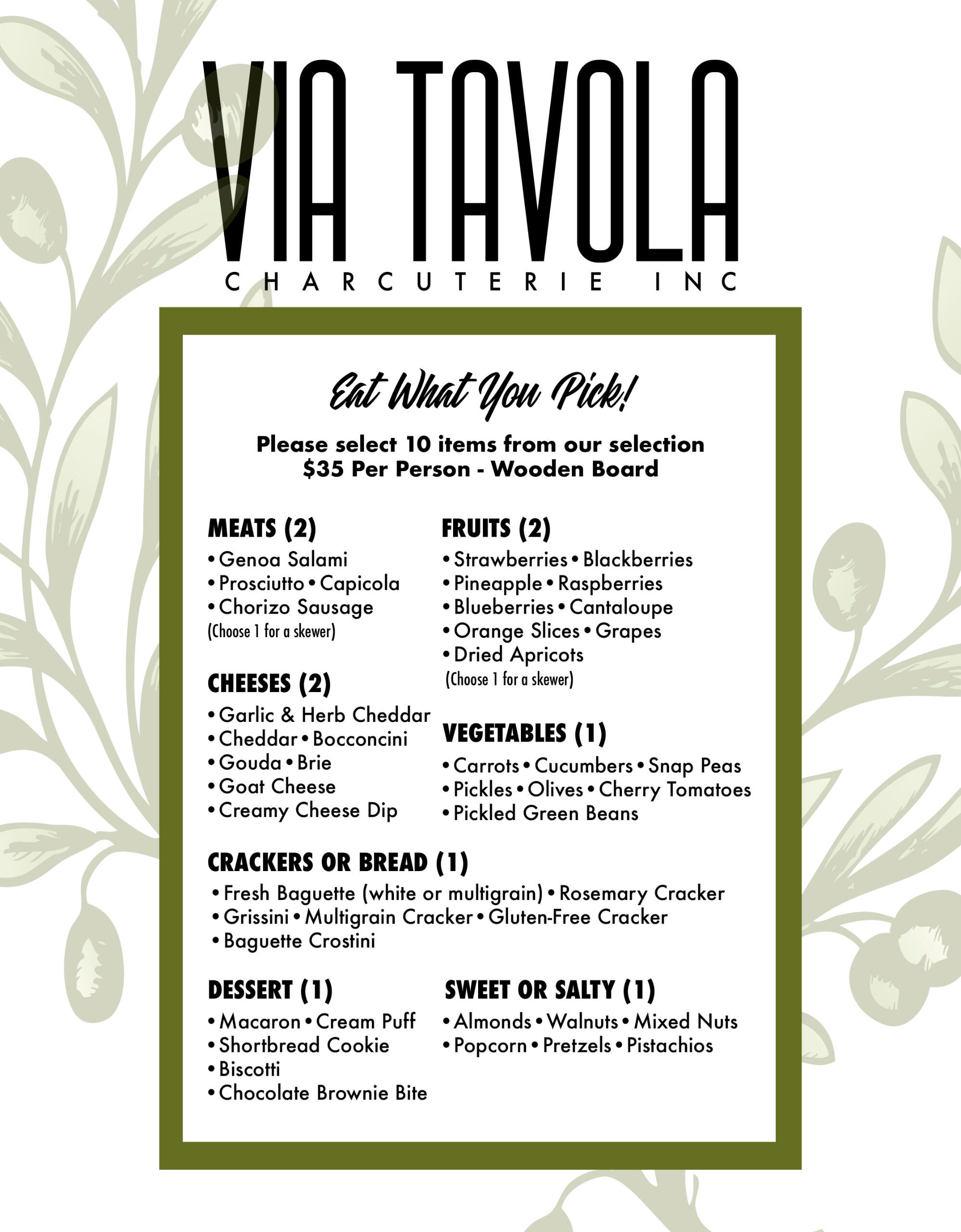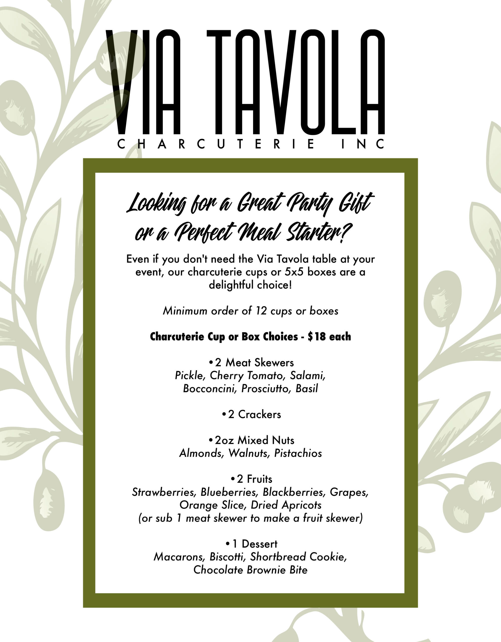 That's right, Via Tavola arrives at your event fully stocked with our beautiful charcuterie table filled with delectable items.
